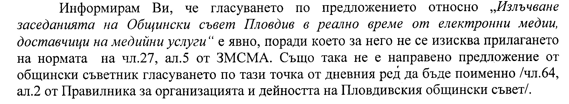 С това мое заявление по ЗДОИ, аз реално се сблъсках челно с проблем, който второто искане на петицията иска да разреши. Избирателите в Пловдив имат право да знаят как са гласували съветниците, на които са дали гласа си. Но ние не знаем.